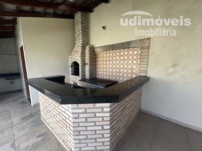 Ótima casa possuindo 03 quartos sendo uma suíte, banho social, sala estar, cozinha com balcão e bancadas com armários, varanda ampla gourmet com balcão, churrasqueira, fogão à lenha, lavabo, lavanderia, quintal e garagem.