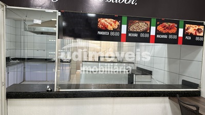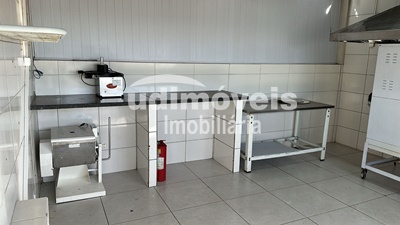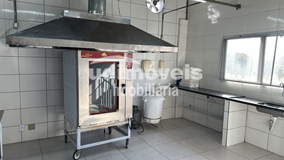 Sala com 100 m² mais mezanino, TV, ar condicionado (2 grandes), câmeras de vigilância, alarme, freezer, 2 fogões, ventilador, liquidificador, micro-ondas, panelas, pratos, talheres, masseira, forno a gás, exaustores, 2 coifas grandes, etc.