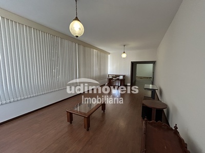 Apartamento bem amplo, sala estar em 03 ambientes, escritório, sala jantar com cristaleira, 04 quartos com armários sendo uma suíte, banho social e suíte com armários e box, roupeiro no hall dos quartos, cozinha com armários, lavanderia, despensa, banho serviço, 01 vaga na garagem, prédio com portaria 24 horas, 02 elevadores, situado na hipercentro da cidade em frente a Praça Tubal Vilela.