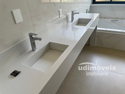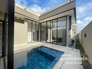Linda casa térrea recém construída, construção de alto padrão, pé direito duplo, possuindo 03 suítes sendo uma master com armário, banheiro com hidromassagem e ducha dupla, janelas e porta com cortinas automáticas, sala ampla conjugada, lavabo, escritório reversivél para quarta suíte, área gourmet integrada, piscina aquecida, sauna, ducha, lindo paisagismo, aquecimento em toda casa, energia fotovoltaica, iluminação com leds, preparação para automação e ar-condicionado.