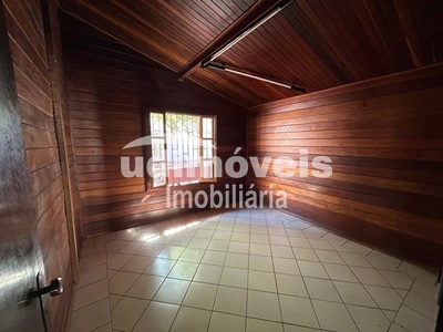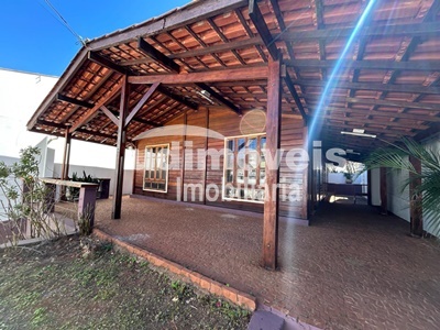 Casa de madeira possuindo Varanda, sala 02 ambientes, 02 quartos com armários, (sendo 01 suíte), banheiro social, banheiro suíte com box, cozinha, lavanderia, quintal amplo com árvores frutíferas, estacionamento para 02 carros com portões automáticos.