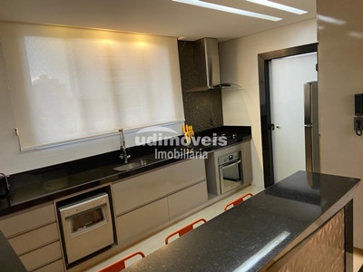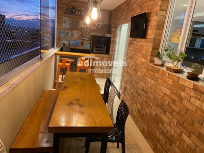03 suítes, sendo uma suíte com closet, todos os ambientes com armários planejados (quartos, banheiros, sala, cozinha, lavanderia, sacada) lavabo, sala em dois ambientes, cozinha ampla, sacada gourmet com churrasqueira, fechada com cortina de vidro, 02 vagas de garagem para 4 carros.