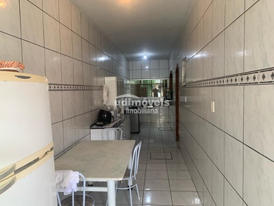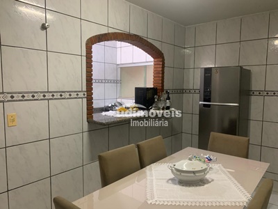 3/4 sala, copa, cozinha, varanda no fundo, com edícula com quarto, cozinha, banheiro e garagem coberta 2 carros.